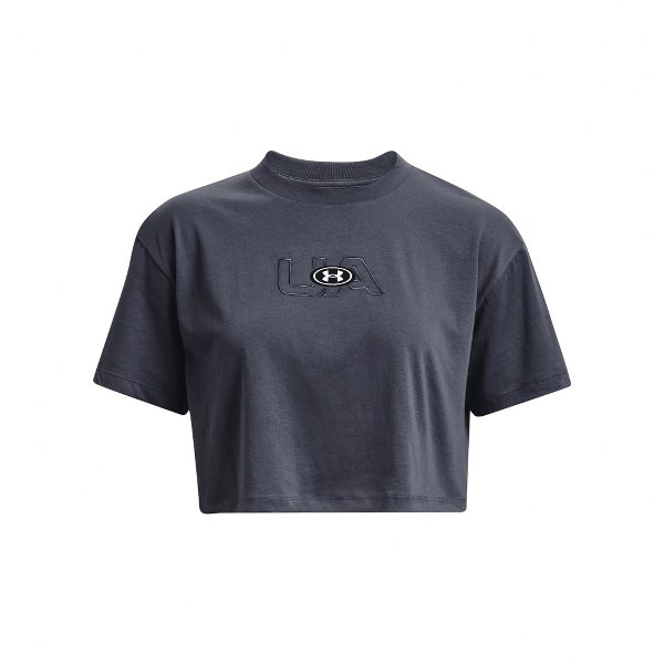 UA W BRANDED LOGO CROP SS